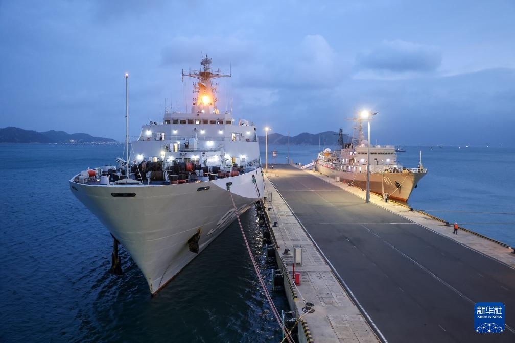 11月24日,中國(guó)海軍長(zhǎng)白山艦和鄭和艦夜泊越南金蘭港碼頭。新華社發(fā)(呂志浩攝)