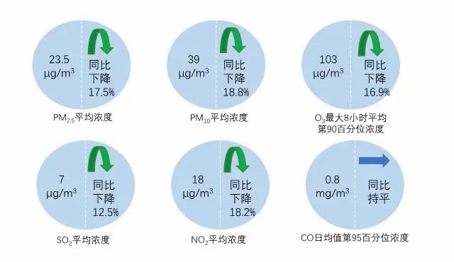 10月,全國(guó)339個(gè)地級(jí)及以上城市PM2.5平均濃度為23.5微克/立方米,同比下降17.5%;PM10平均濃度為39微克/立方米,同比下降18.8%;O3平均濃度為103微克/立方米,同比下降16.9%;SO2平均濃度為7微克/立方米,同比下降12.5%;NO2平均濃度為18微克/立方米,同比下降18.2%;CO平均濃度為0.8毫克/立方米,同比持平。