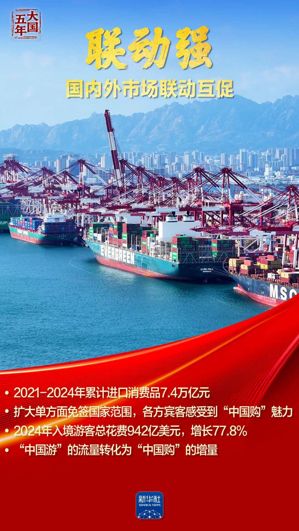 這五年,“智能”“綠色”煥新潮涌,國風(fēng)文創(chuàng)、數(shù)字消費勾勒品質(zhì)生活新圖景;服務(wù)消費快速增長折射結(jié)構(gòu)優(yōu)化;“中國機(jī)遇”惠及世界,“中國市場”成為共享市場。跟隨海報,共同見證超大規(guī)模市場蘊藏的磅礴底氣,感受提振內(nèi)需釋放的澎湃動力。