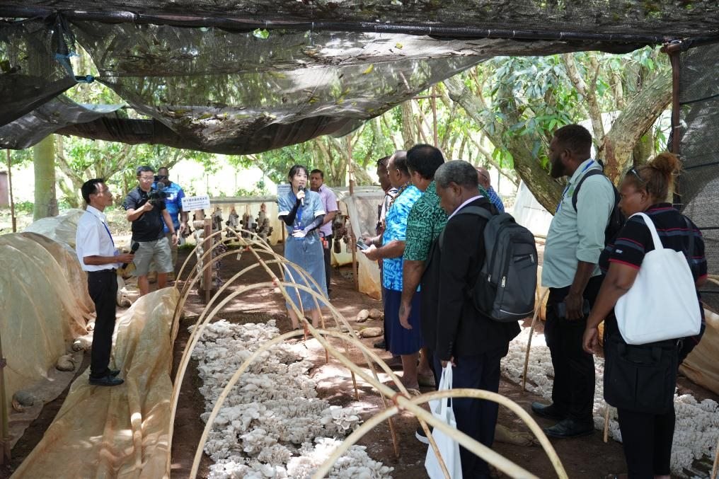 11月19日,在斐濟楠迪中國—太平洋島國菌草技術示范中心,與會代表參觀菌草菇種植示范基地。新華社發(fā)(高鑫攝)