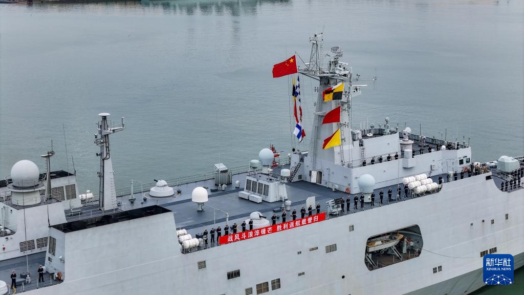12月22日,中國(guó)海軍989編隊(duì)完成遠(yuǎn)海綜合實(shí)習(xí)任務(wù)返回青島。新華社發(fā)(武航攝)