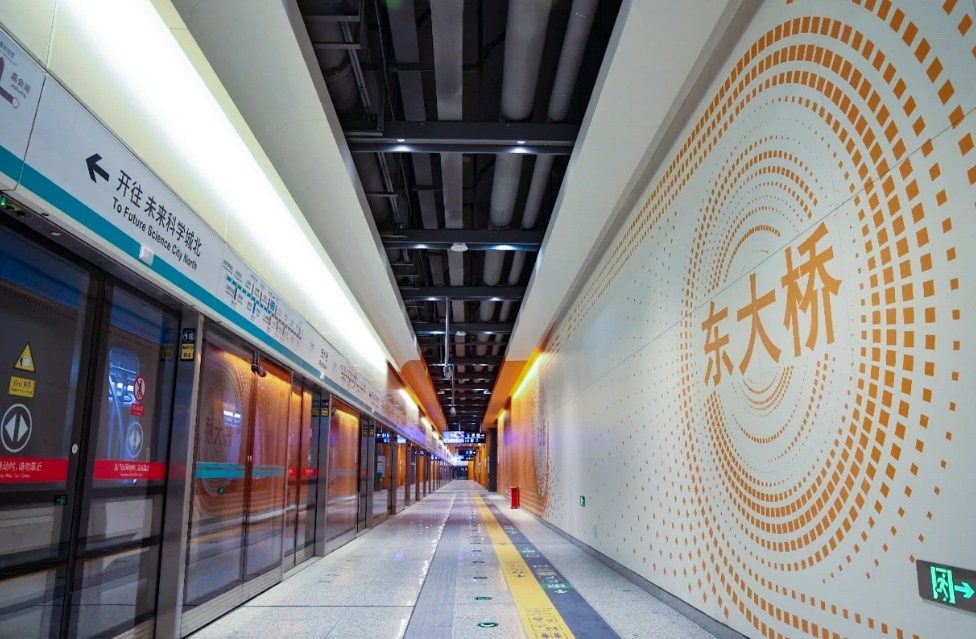 17號線中段延續(xù)了“科創(chuàng)未來”主題,在重點站融入地域文化元素。在東大橋站站廳層,一幅幅繪畫藝術品讓人眼前一亮。