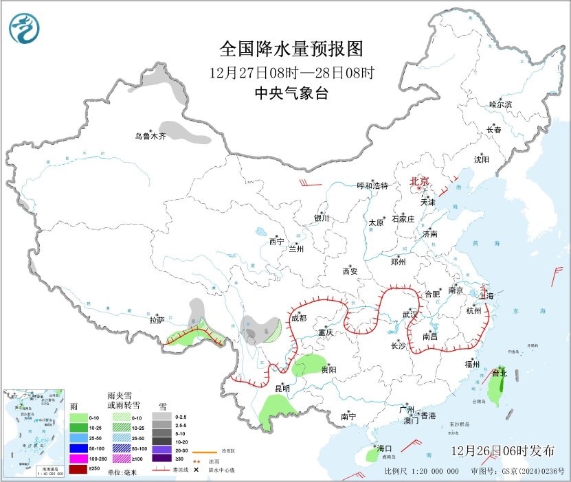 全國降水量預(yù)報圖(12月26日08時-27日08時)