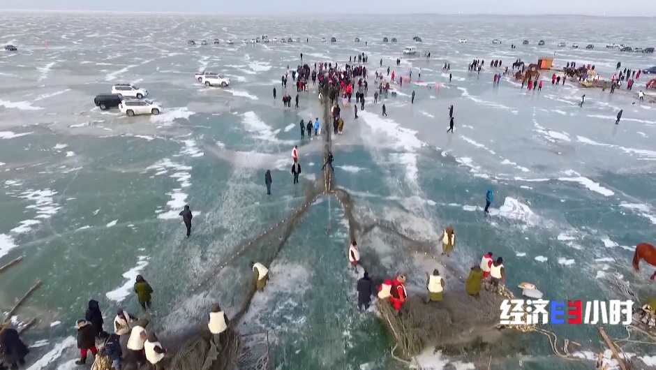 為了吸引游客,查干湖還推出私人訂制捕魚、冰下盲盒等新項目。100米長的掛網(wǎng),游客組隊拉拽,親手捕魚后,可以直接送進(jìn)后廚做成鐵鍋燉。