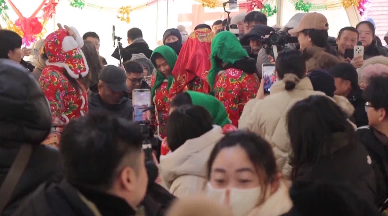 一場精心籌備的東北民俗婚禮體驗,讓大棚內(nèi)五湖四海的游客體驗東北鄉(xiāng)土風(fēng)情,大棚外,鍋包肉、雪衣豆沙等小吃的裊裊熱氣氤氳升騰。