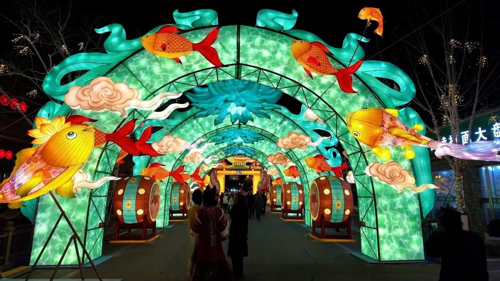 天津市西青區(qū)楊柳青古鎮(zhèn)披上節(jié)日盛裝,讓每一位游客都能沉浸在濃濃的新年氛圍中。