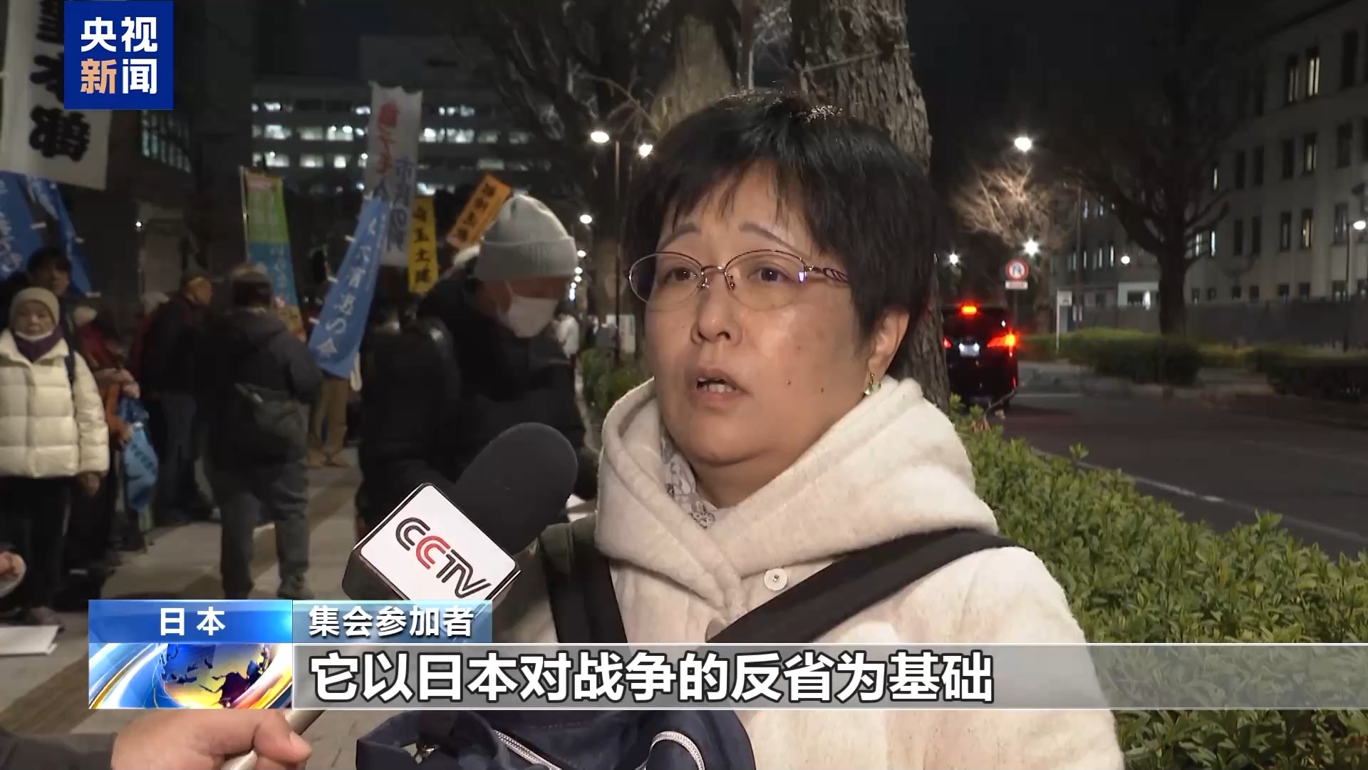 集會參加者:日本是擁有憲法第九條的國家,它以日本對戰(zhàn)爭的反省為基礎,規(guī)定不再發(fā)動戰(zhàn)爭。作為日本的首相,本應挺起胸膛捍衛(wèi)和平才對。