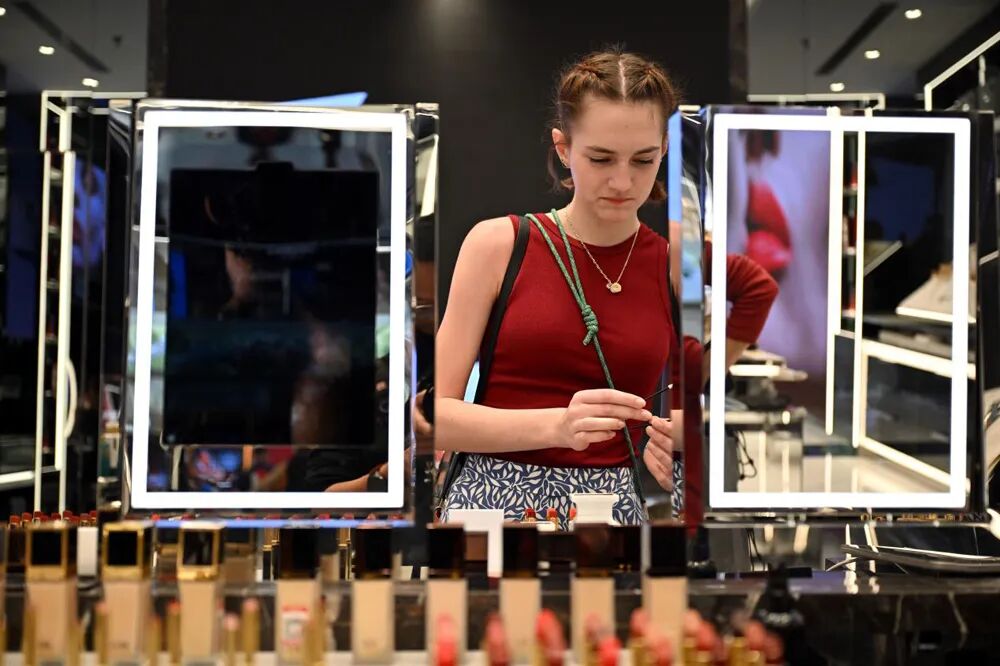 1月10日,消費者在三亞國際免稅城購物。(新華社發(fā))