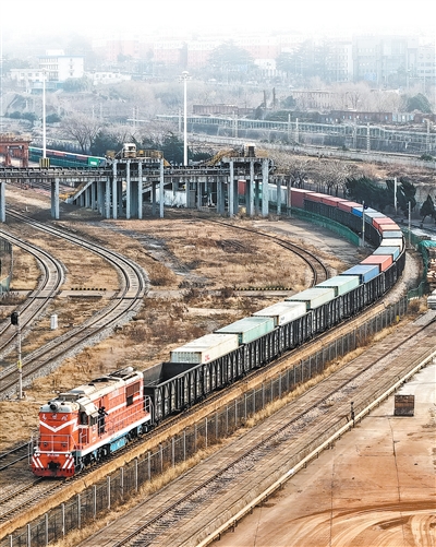 1月1日,一列裝有汽車配件的火車從中哈(連云港)物流合作基地發(fā)往哈薩克斯坦。