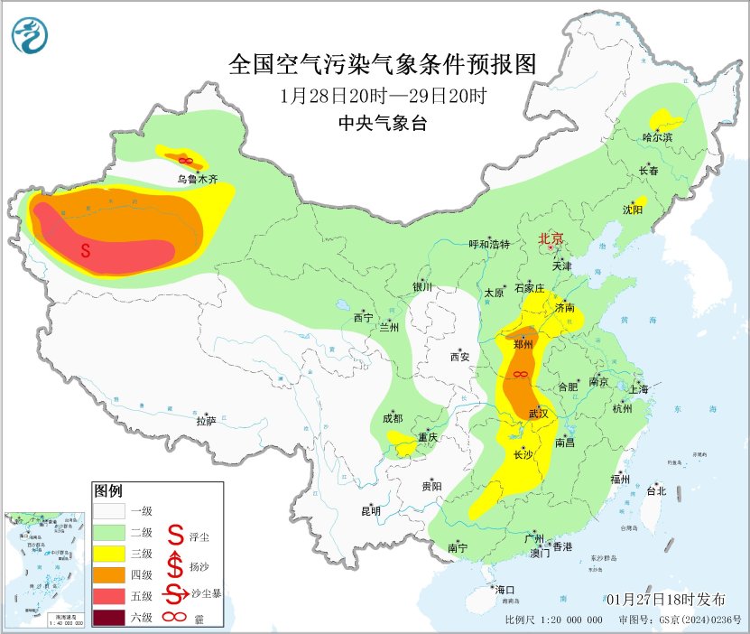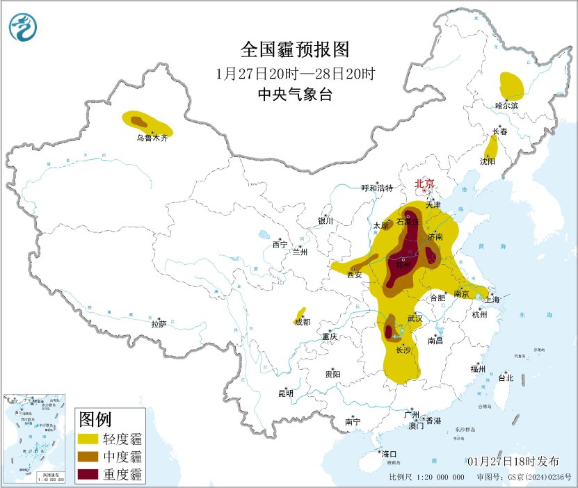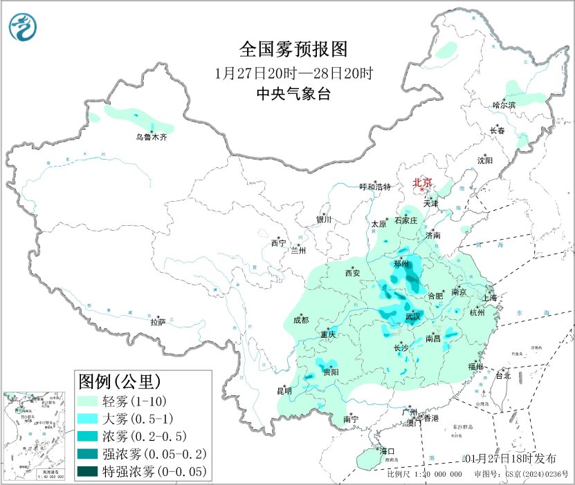 27日夜間至29日,湖北中東部、湖南中北部等地大氣擴(kuò)散條件一般,有輕至中度霾。此外,27日夜間至28日上午,湖北中東部、湖南北部等地的部分地區(qū)有大霧,局地有能見度不足200米的強(qiáng)濃霧。