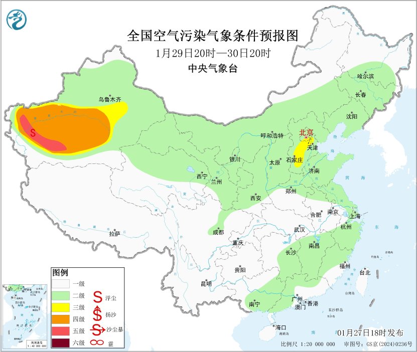 27日夜間至28日,區(qū)域大部大氣擴(kuò)散條件一般,山西中南部、陜西關(guān)中等地的部分地區(qū)有輕至中度霾。29日起,受冷空氣和降水共同影響,霾天氣逐漸減弱消散。