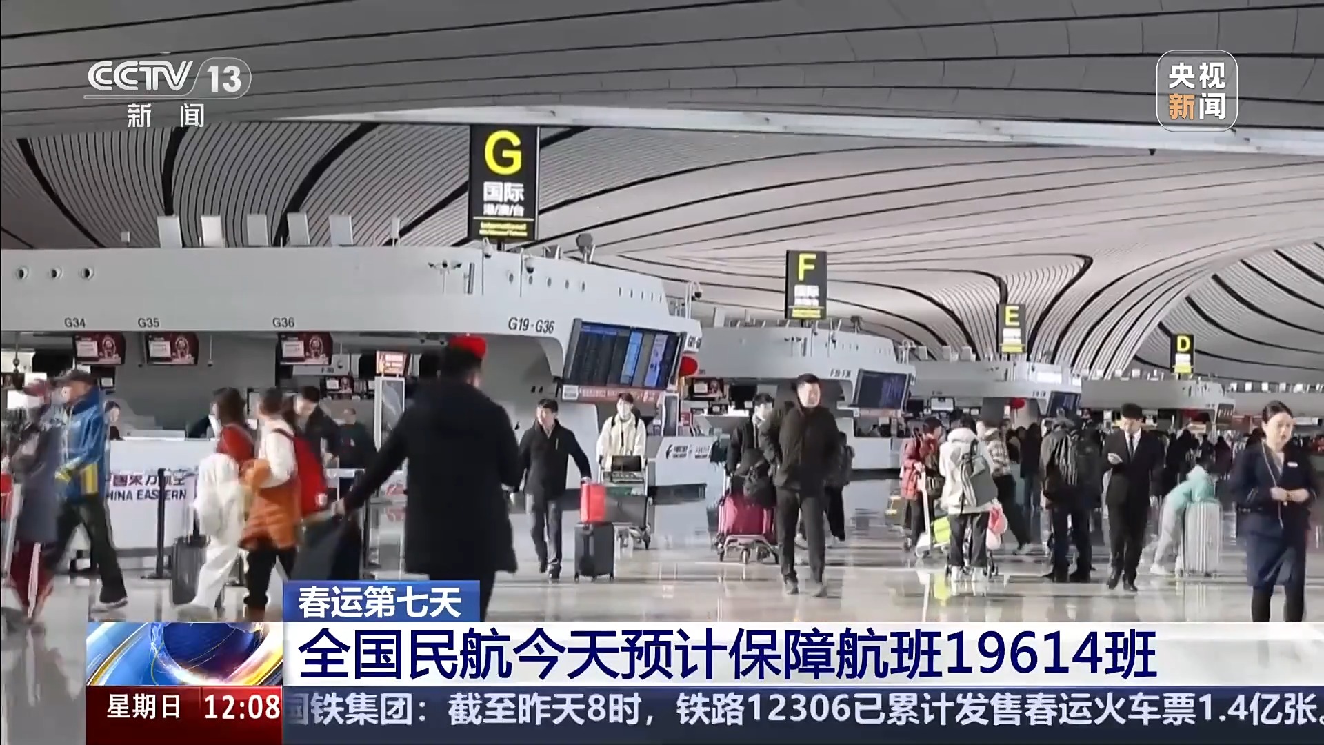 全國民航今天預(yù)計保障航班19614班,可提供座位數(shù)297萬個,預(yù)計運輸旅客239萬人次。