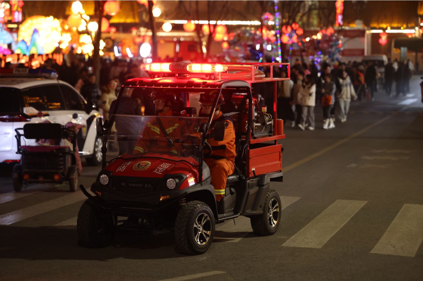 “春節(jié)期間,我們?nèi)珕T在崗,24小時輪班值守,確保每一秒都有人守護(hù)?!毙弥菔邢谰仍ш牴懦钦緢?zhí)勤負(fù)責(zé)人鄭澤宇介紹,支隊投入警力36人,16輛消防車,開展巡查值守和前置備勤兩種模式,三個固定執(zhí)勤點(北廣場、東大街、南廣場)五個巡查小組實行“雙人雙崗”制,每班配備滅火救援器材、應(yīng)急保障物資,確保突發(fā)情況“1分鐘響應(yīng)、3分鐘到場、5分鐘處置”。