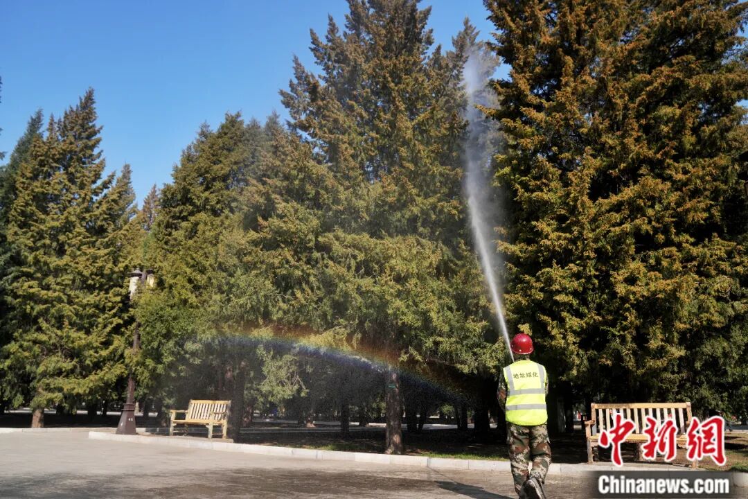 “除了提前做好修剪,我們針對花粉、飛絮高發(fā)時段,全面推行‘噴灌+高壓水槍’分區(qū)分級洗樹降塵作業(yè)?!鳖U和園園林科技科主任趙曉燕介紹,目前該園已在重點區(qū)域每日開展三次噴水洗樹降塵及地面濕化清掃,降低空氣中花粉濃度。此外,公園還在游客服務中心等一線窗口準備了口罩,供有需求的游客免費取用。