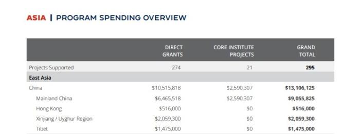 NED在亞洲的投入總額超過5300萬美元。其中,針對中國的相關項目金額達到1300萬美元,位居全球第一。砸這么多錢,在中國干了什么?