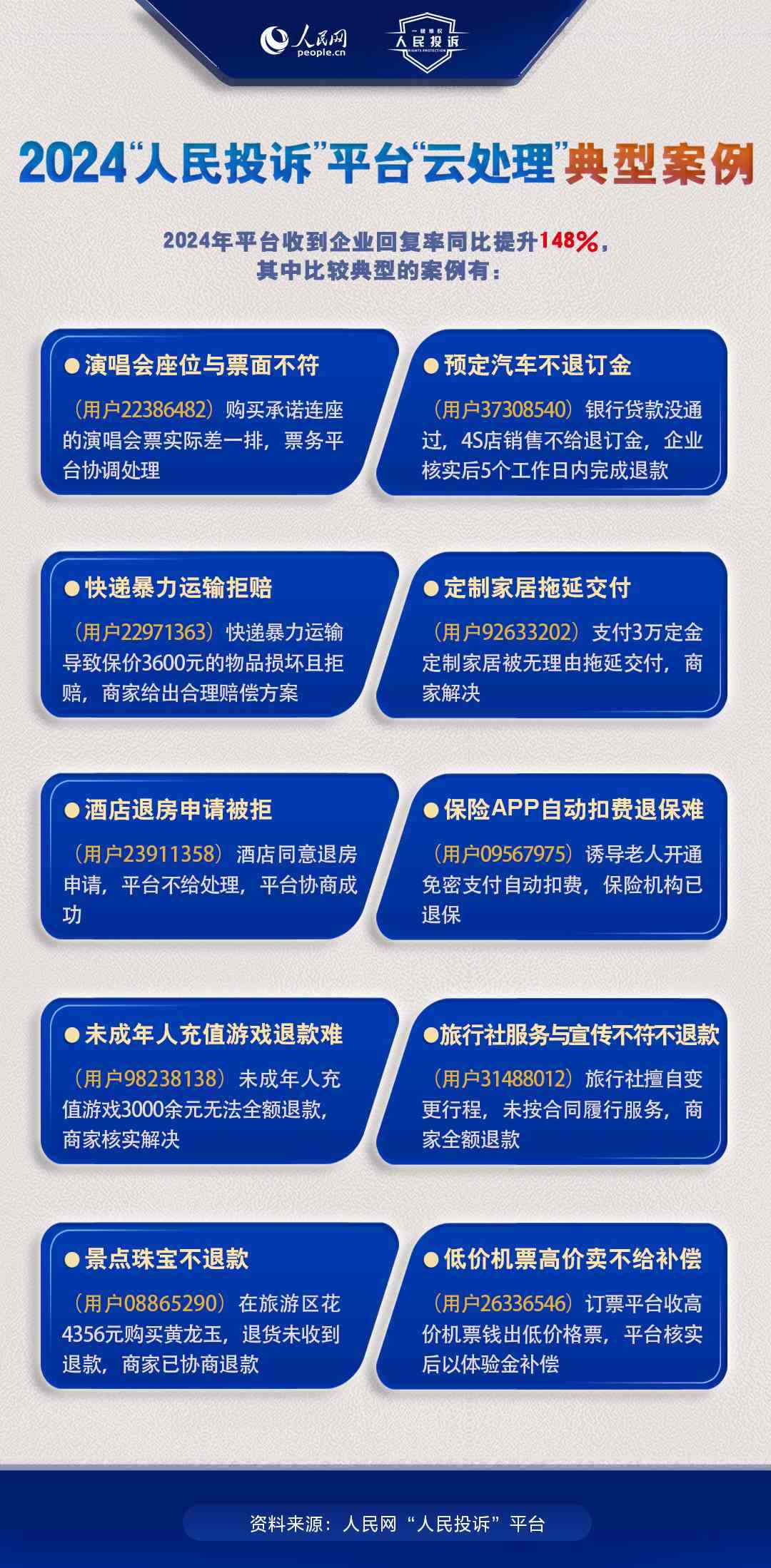 2024年,旅游消費(fèi)持續(xù)火爆,以舊換新“換”出消費(fèi)新活力,直播電商“品質(zhì)化”轉(zhuǎn)型,新能源汽車購銷兩旺……在消費(fèi)市場熱力持續(xù)提升的背景下,旅游產(chǎn)品退訂難,電商促銷虛假價保,直播間營銷違規(guī),車險車貸服務(wù)欺詐,AI培訓(xùn)貨不對板等消費(fèi)侵權(quán)問題引發(fā)廣泛關(guān)注。“人民投訴”發(fā)布年報(bào)帶您回顧這一年來,平臺消費(fèi)維權(quán)熱點(diǎn)和入駐企業(yè)積極處理糾紛的舉措。