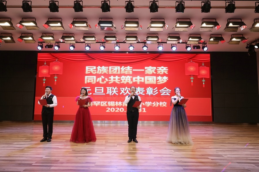 張楊)“2020年是不同尋常的一年,新冠疫情席卷人類,中國(guó)在這場(chǎng)疫情大考中的出色表現(xiàn)令世界矚目,我校也在這場(chǎng)大考中迎難而上,‘停課不停教、停課不停學(xué)’,老師們將三尺講臺(tái)搬到了方寸屏幕,正是各民族兒女像石榴籽一樣緊緊團(tuán)結(jié)在一起,我們才迎來(lái)了抗疫的勝利?!?020年12月31日下午,呼和浩特市賽罕區(qū)錫林南路小學(xué)分校全體教職工與學(xué)生代表歡聚一堂,共同舉行“民族團(tuán)結(jié)一家親,同心共筑中國(guó)夢(mèng)”元旦聯(lián)歡表彰會(huì)。學(xué)校校長(zhǎng)李文東致辭,對(duì)全校師生的辛勤付出給予肯定,并祝愿全體師生新年快樂。