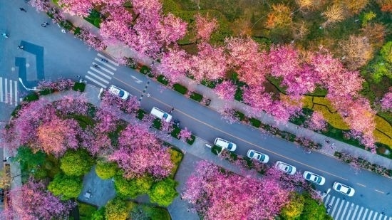 絢爛冬櫻花裝點了整個校園。云南大學供圖