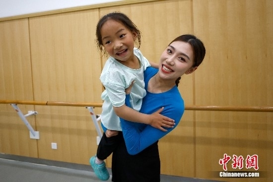 圖為孩子們與舞蹈演員互動(dòng)。中新社記者 富田 攝