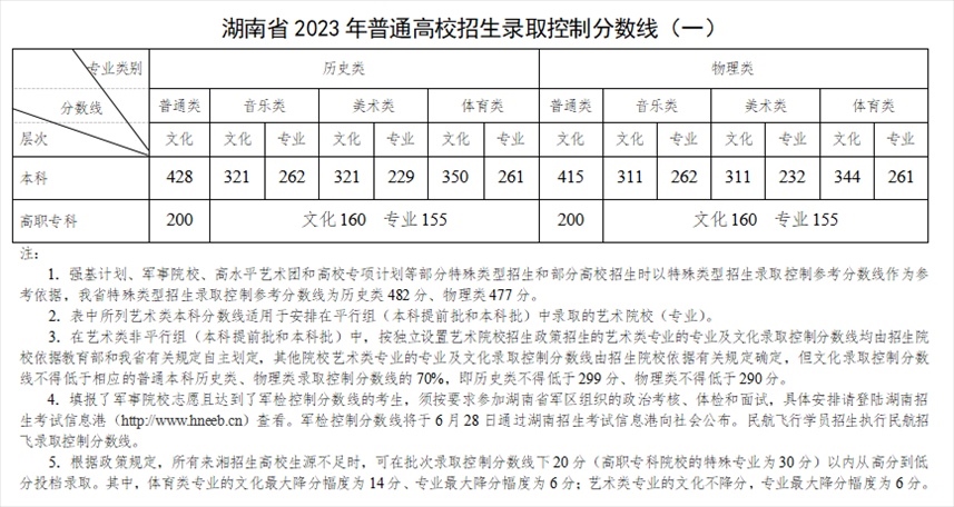 人民網(wǎng)北京6月25日電 據(jù)湖南省教育考試院消息,今天,湖南省2023年普通高校招生各批次錄取控制分數(shù)線公布,本科普通類中,歷史類428分、物理類415分;特殊類型招生錄取控制參考分數(shù)線中,歷史類482分、物理類477分。(李依環(huán)、實習生張婉柔)