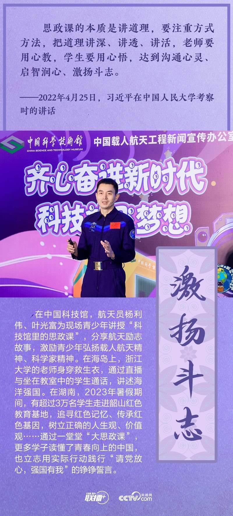 如何辦好新時代思政課?總書記有明確部署,全國各地也進行了頗多有益探索。在2023年“把青春華章寫在祖國大地上”網(wǎng)絡(luò)主題宣傳和互動引導(dǎo)活動舉辦之際,央視網(wǎng)《聯(lián)播+》與您一同走進豐富多彩的思政課堂。