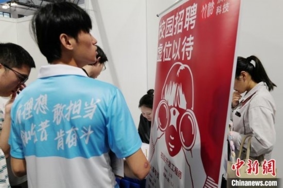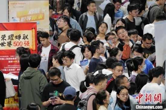 本次招聘會是共青團服務2024屆畢業(yè)生的首場線下招聘會,吸引上海市50余所高校的7000余名大學生參加。中新網(wǎng)記者殷立勤 攝
