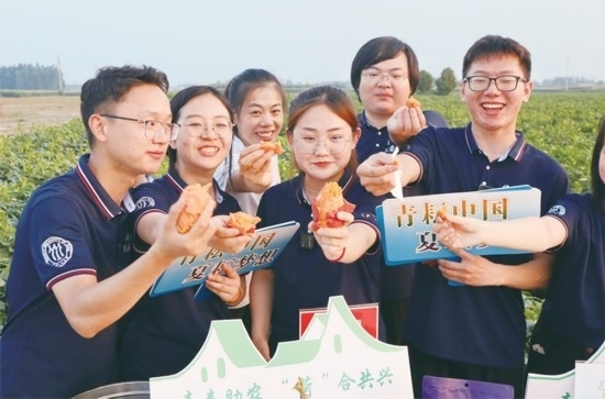 圖為2023年暑期,中國人民大學(xué)博士生服務(wù)團在山東菏澤圍繞“人才產(chǎn)業(yè)融合發(fā)展賦能鄉(xiāng)村振興路徑探索”課題進行調(diào)研,并開展“青耘中國·夏耘夢想”公益助農(nóng)直播活動。 中國人民大學(xué)供圖