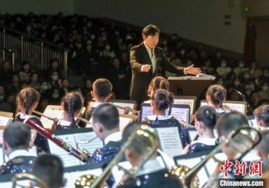 12月27日,新疆烏魯木齊市沙依巴克區(qū)教育系統(tǒng)“龍行龘龘 樂(lè)動(dòng)童年”2024年交響管樂(lè)新年音樂(lè)會(huì)在該市青少年宮舉辦,來(lái)自烏魯木齊市第27小學(xué)的交響管樂(lè)團(tuán)演奏了《紅旗頌》、《茉莉花》等經(jīng)典曲目,并與絲路名師合唱團(tuán)合作演出《青春之舞》、《最炫民族風(fēng)》等曲目。據(jù)介紹,該交響管樂(lè)團(tuán)成立于2014年,規(guī)模從最初的40余人發(fā)展到現(xiàn)今近70人,團(tuán)員平均年齡10歲。