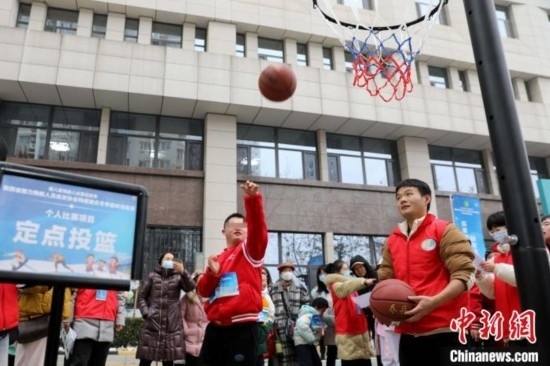 18日,伴隨著激情昂揚的《運動員進行曲》,來自陜西省多個地市的48名智力殘疾兒童齊聚西安,化身運動健兒追逐體育夢想,參與陜西省智力殘疾人及親友協(xié)會殘健融合冬季趣味運動會。