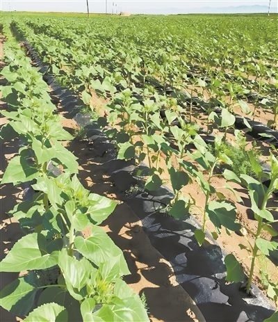 土壤經(jīng)中國農(nóng)業(yè)科學(xué)院鹽堿地改良創(chuàng)新團(tuán)隊改良后,種植的食葵長勢良好。受訪者供圖