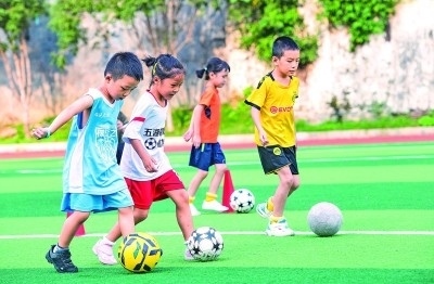 湖南永州一學(xué)校運動場,孩子們參加足球訓(xùn)練。新華社發(fā)