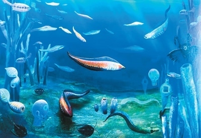 然而,在距今5.6億—5.18億年前的大約4200萬年間,發(fā)生了整個生命史上最為壯觀的生物創(chuàng)新事件——寒武紀大爆發(fā),即在不到地球歷史1%的時間內誕生了90%的動物門類。大量的動物化石為追溯動物進化和人類遠祖提供了重要標本。前面提到的鳳姣昆明魚,就生活在寒武紀大爆發(fā)巔峰時期。