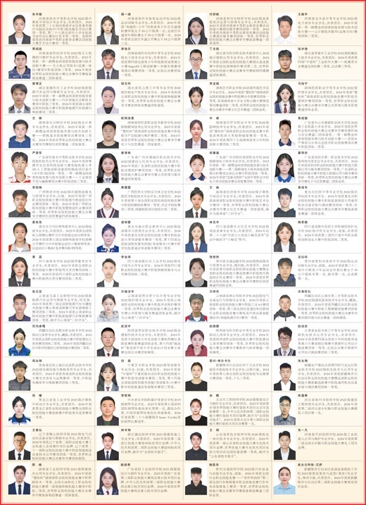 經(jīng)過嚴(yán)格選拔和評(píng)審,全國(guó)約2萬名中職學(xué)生榮獲2023—2024學(xué)年度中等職業(yè)教育國(guó)家獎(jiǎng)學(xué)金。以下100名學(xué)生是中等職業(yè)教育國(guó)家獎(jiǎng)學(xué)金獲獎(jiǎng)學(xué)生中的優(yōu)秀代表。希望全國(guó)中職學(xué)生以他們?yōu)榘駱?,愿學(xué)技能、學(xué)好技能,努力將自己鍛造成為新時(shí)代的高素質(zhì)技術(shù)技能人才、能工巧匠、大國(guó)工匠,在推進(jìn)強(qiáng)國(guó)建設(shè)、民族復(fù)興偉業(yè)中展現(xiàn)青春作為、彰顯青春風(fēng)采、貢獻(xiàn)青春力量,奮力書寫為中國(guó)式現(xiàn)代化挺膺擔(dān)當(dāng)?shù)那啻浩隆?/p>