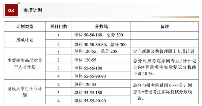 注*:按研究方向分計劃招生的,總分要求以考生報考的研究方向普通考生實際復(fù)試分數(shù)線為參照基準。