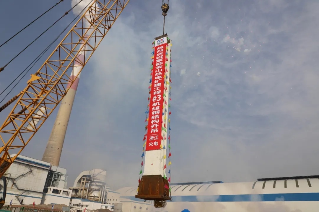 3號機組鍋爐首根鋼結(jié)構(gòu)吊裝就位