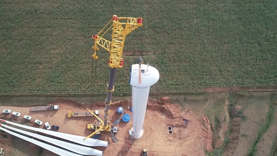 9月8日,第一臺風(fēng)機整體吊裝成功