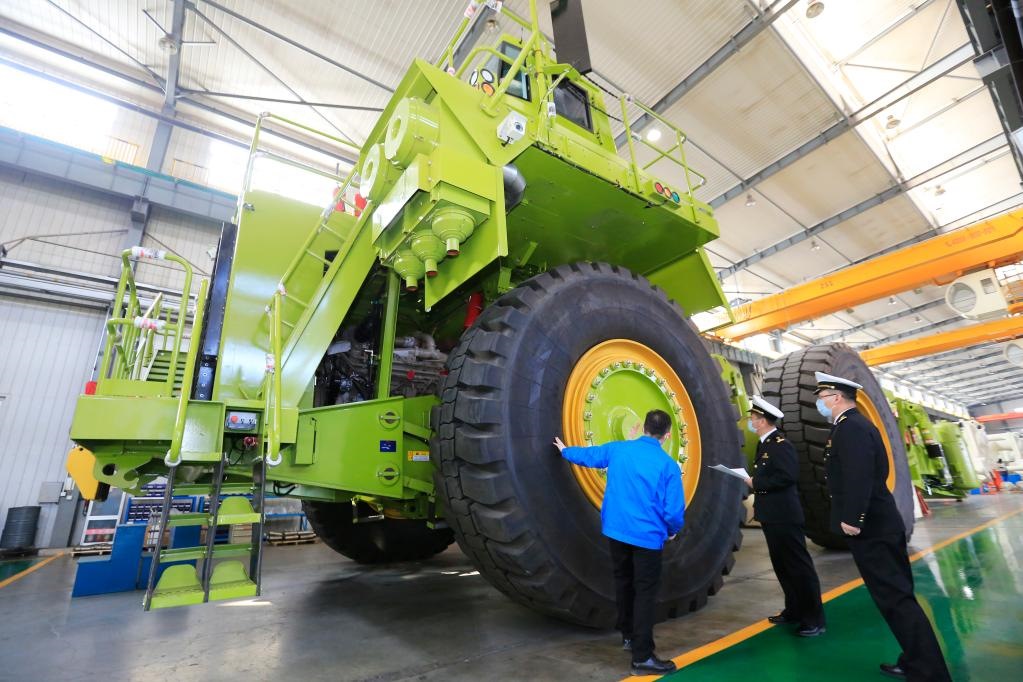 包頭海關關員監(jiān)管內蒙古北方重型汽車股份有限公司出口的礦用車。(受訪者供圖)