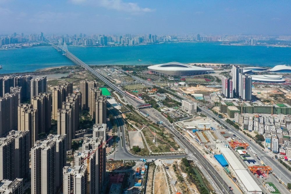 2月28日,廣湛鐵路湛江灣海底隧道盾構(gòu)區(qū)間“過海穿城”(無人機(jī)照片)。新華社記者 劉大偉 攝
