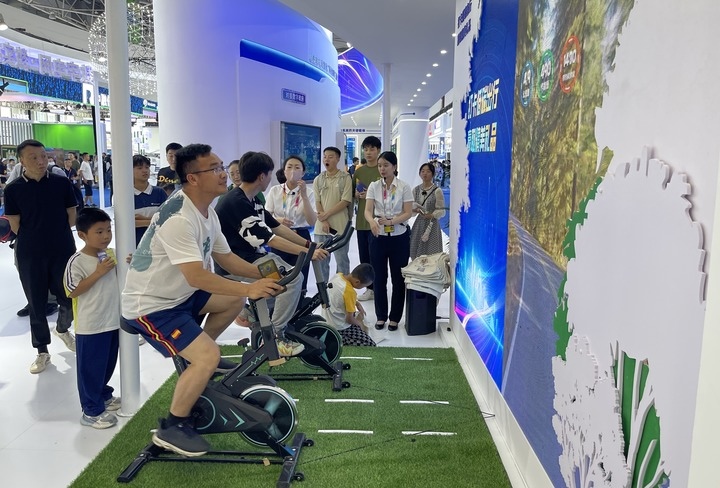 5月27日,市民在數(shù)博會上體驗(yàn)數(shù)字產(chǎn)品。新華社記者 駱飛 攝