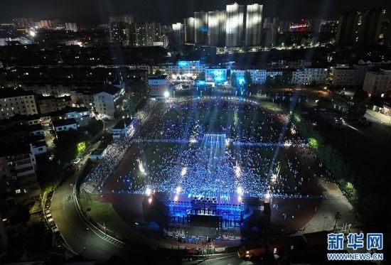 江西省吉安市萬安縣城北體育公園,鄉(xiāng)村音樂會現場人潮涌動。新華網發(fā) 邱哲 攝