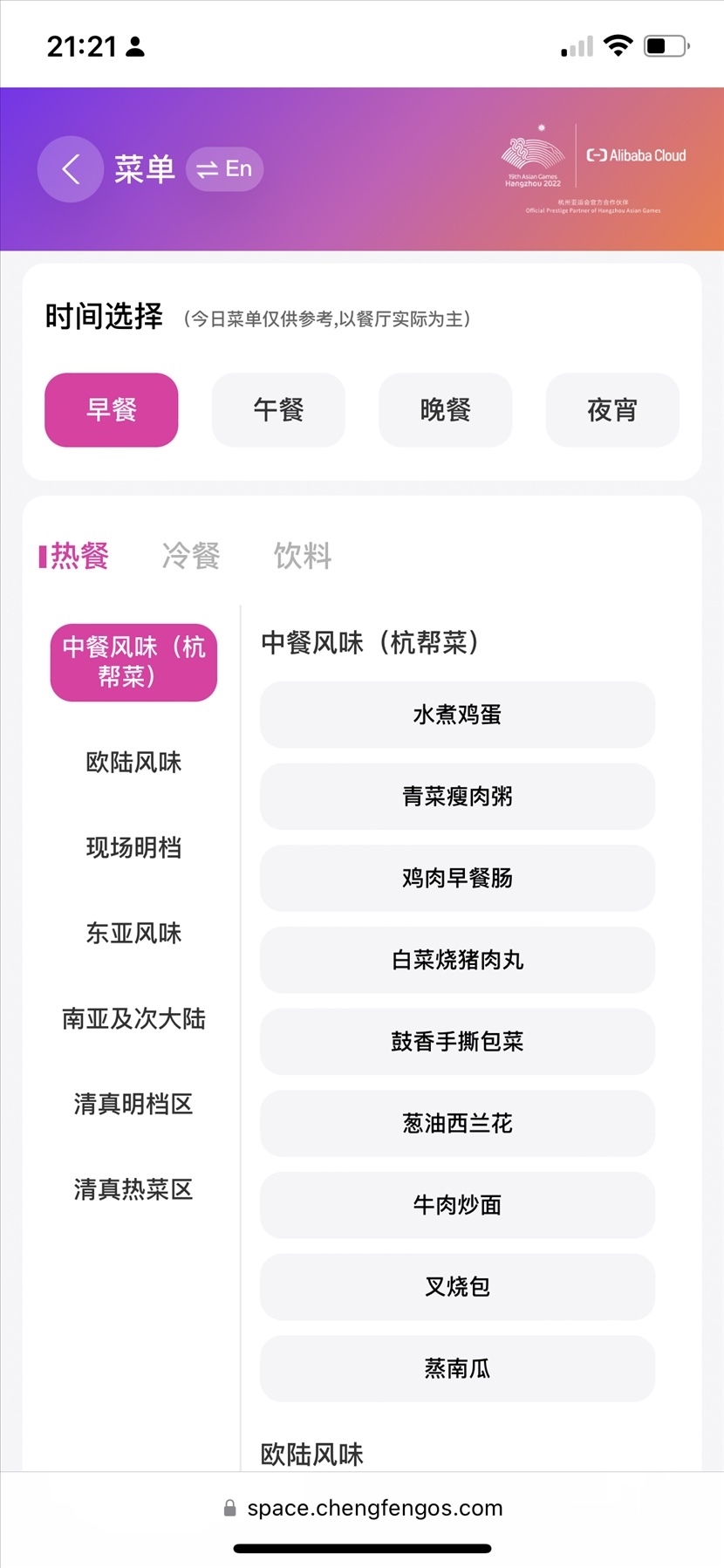 老鴨蘿卜湯、宋嫂魚羹、雪菜蒸鱸魚、東坡肉、京蔥爆牛肉……打開云上亞運(yùn)村的 “云上通”小程序,各色餐食便可隨意選擇預(yù)約。不僅傳統(tǒng)中餐,“歐陸風(fēng)味”“東亞風(fēng)味”“東南亞及次大陸”各式特色餐食,也可根據(jù)個人喜好和時間安排進(jìn)行性選擇。同時,還可以隨時查看餐廳的實(shí)時人流量。