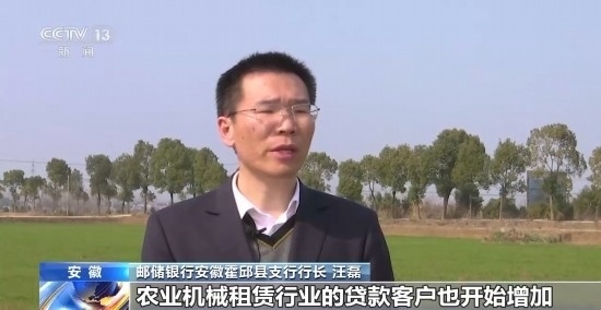 郵儲銀行安徽霍邱縣支行行長 汪磊:隨著機械強農(nóng)的推進,農(nóng)業(yè)服務公司、農(nóng)業(yè)機械租賃行業(yè)的貸款客戶也開始增加,今年這類新型客戶貸款金額同比增幅超300%。