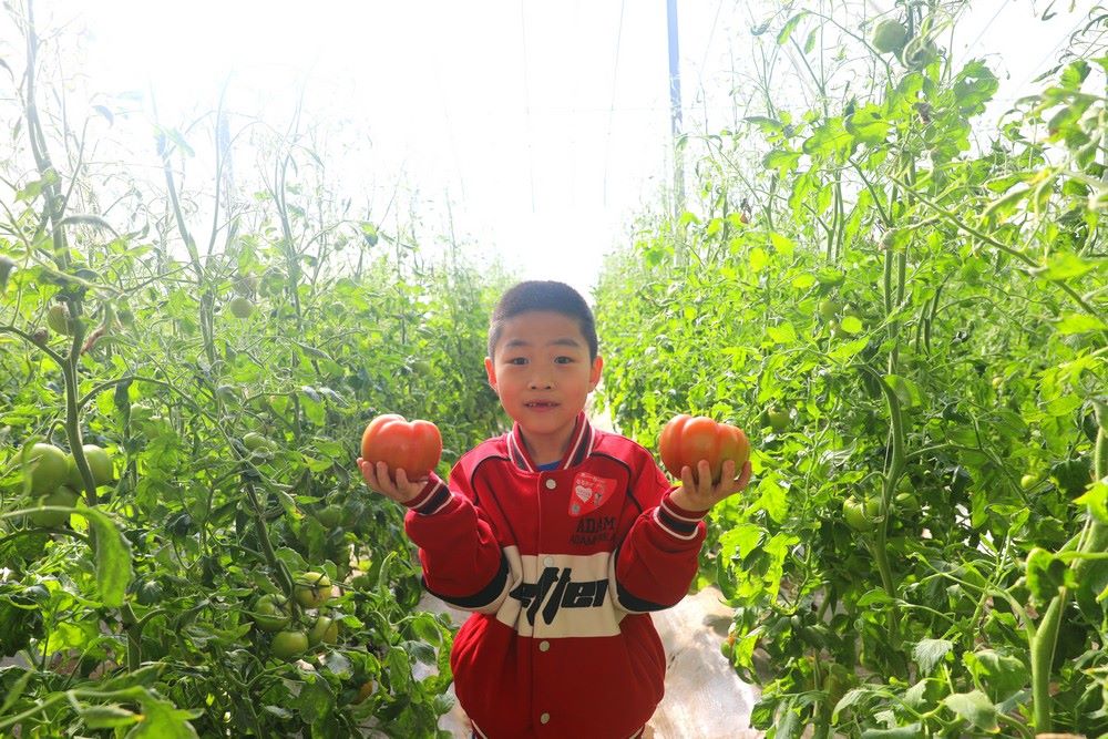 游客在阿勒坦設施農業(yè)基地采摘西紅柿 記者 張楊攝影