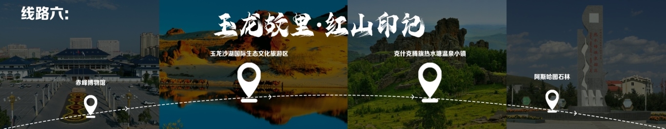 “一城看北疆?大美青城”四日游 行程由呼和浩特出發(fā),至哈達(dá)門高山草原旅游區(qū),至莫尼山非遺小鎮(zhèn),至大召歷史文化旅游區(qū),再至昭君博物院,再至奧威馬文化生態(tài)旅游區(qū),再至蒙草草博園,再至老牛坡紅色文化旅游區(qū),終點(diǎn)為老牛灣黃河大峽谷旅游區(qū)。 線路二 “醉美草原·呼倫貝爾”五日游 線路行程由海拉爾出發(fā),至呼倫貝爾大草原·莫爾格勒河景區(qū),至烏蘭山,至額爾古納濕地,再至白樺林,再至呼和諾爾旅游區(qū),終點(diǎn)為呼倫貝爾古城旅游休閑街區(qū)。 線路三 “邊境風(fēng)情·環(huán)興安嶺自駕之旅”四日游 線路行程由烏蘭浩特出發(fā),至翰嘎利湖休閑旅游度假區(qū)出發(fā),再至紅花爾基樟子松林國家森林旅游區(qū),再至諾干湖旅游度假區(qū),再至扎賚諾爾猛犸旅游區(qū),終點(diǎn)為滿洲里市中俄邊境旅游區(qū)。 線路四 “森林溫泉·阿爾山度假”三日游 線路行程由阿爾山出發(fā),至鹿角灣溫泉度假營地,至世界地質(zhì)公園博物館,至中國溫泉博物館,再至氧心森林浴道,再至圣泉廣場,再至青坊酒吧,再至阿爾山國家森林公園,終點(diǎn)為白狼峰景區(qū)。 線路五 “勝境探秘·科爾沁草原”三日游 線路行程由通遼出發(fā),至科爾沁左翼中旗探訪哈民考古遺址公園,至珠日河草原旅游區(qū),再至科左后旗大青溝旅游區(qū),終點(diǎn)為庫倫旗銀沙灣旅游區(qū)。 線路六 “玉龍故里·紅山印記”三日游 線路行程由赤峰出發(fā),至赤峰博物館,至玉龍沙湖國際生態(tài)文化旅游區(qū),再至克什克騰旗熱水塘溫泉小鎮(zhèn),終點(diǎn)為阿斯哈圖石林。 線路七 “草原追夢·暢游錫林郭勒”三日游 線路行程由錫林浩特出發(fā),至貝子廟旅游景區(qū),至烏蘭烏臺(tái)旅游區(qū),至布林泉,再至野狼谷,終點(diǎn)為九曲灣景區(qū)。 線路八 “北京向西一步·草原避暑之旅”四日游 線路行程由北京出發(fā),至烏蘭哈達(dá)火山,至二連浩特國家地質(zhì)公園,至輝騰錫勒草原,至林胡古塞,再至集寧戰(zhàn)役紀(jì)念館,再至烏蘭察布之夜,終點(diǎn)為蘇木山旅游區(qū)。 線路九 “暢游西部·沿黃自駕之旅”五日游 線路行程由鄂爾多斯出發(fā),至鄂爾多斯野生動(dòng)物園,至萬家惠旅游區(qū),至響沙灣旅游區(qū)。到達(dá)包頭,至春坤山景區(qū),再至包頭金街,至黃河國家濕地公園。到達(dá)巴彥淖爾,至烏梁素海,再至黃河灣步行街,再至三盛公國家水利風(fēng)景區(qū),終點(diǎn)為烏海湖度假區(qū)。 線路十 “沙漠傳奇·巴丹吉林沙漠探險(xiǎn)之旅”四日游 線路行程由阿拉善出發(fā),至參觀越野e族阿拉善夢想沙漠汽車航空樂園景區(qū),至定遠(yuǎn)營古城旅游區(qū),至巴丹吉林沙漠景區(qū),再至額濟(jì)納旗東風(fēng)航天城旅游區(qū),再至居延海景區(qū),終點(diǎn)為胡楊林旅游區(qū)。