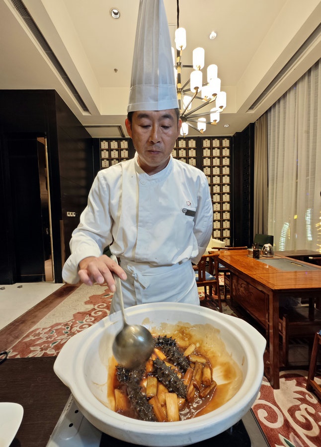 現(xiàn)場(chǎng)烹制蔥燒海參