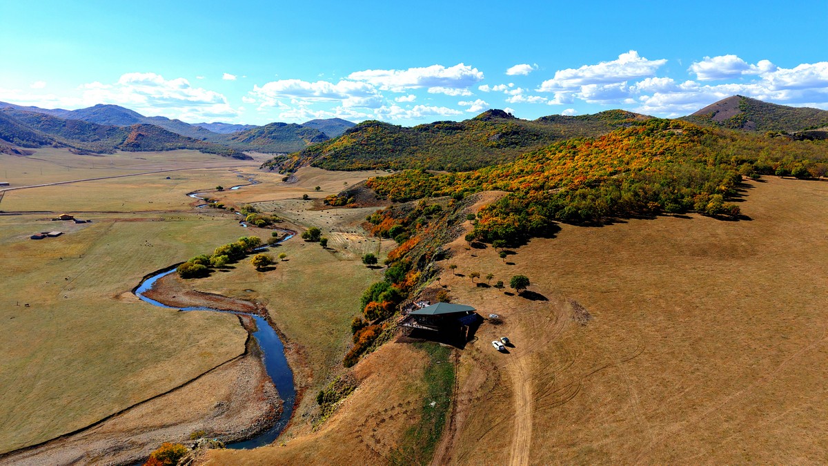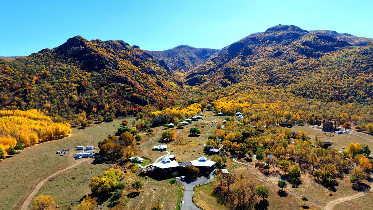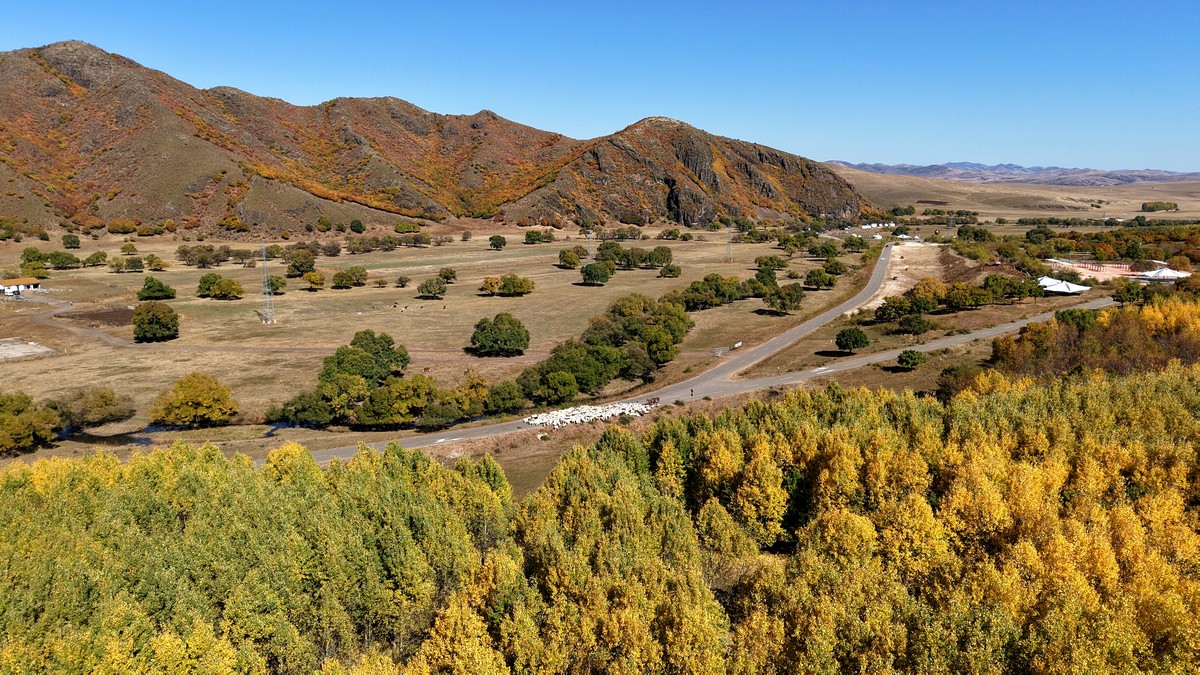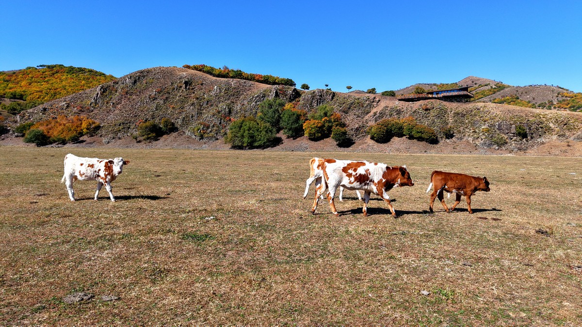 黑羊山旅游度假區(qū),海拔1319米,因這里的山形似黑羊頭得名。金秋時節(jié),整個景區(qū)被一片五彩斑斕的世界所籠罩,藍天、白云、溪流、牛羊群構(gòu)成一幅醉人的畫卷,恍若進入童話世界。