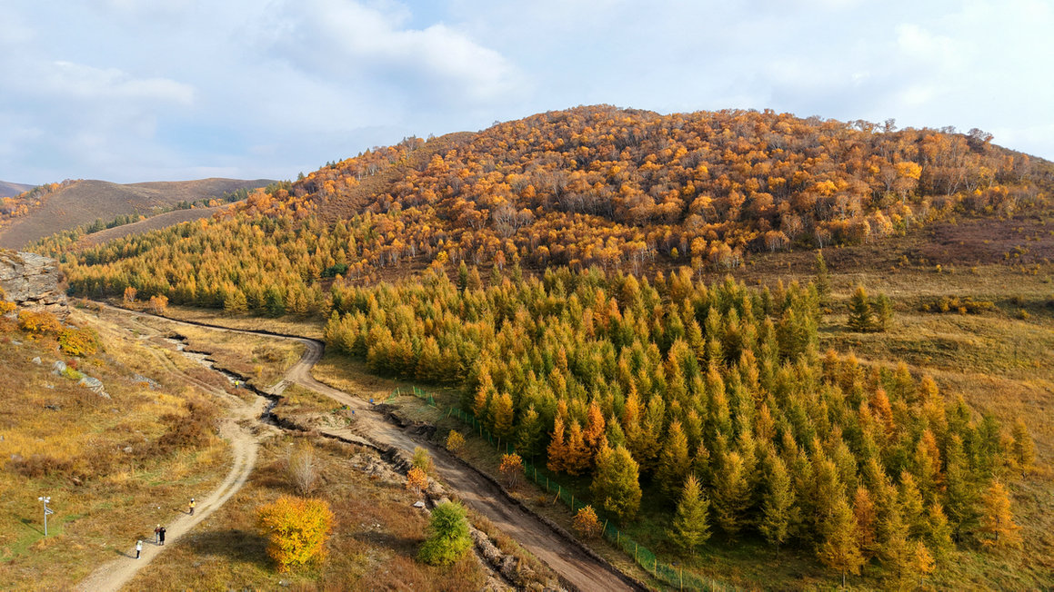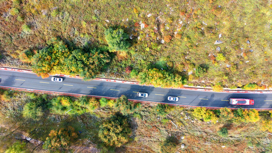 10月3日,內(nèi)蒙古大青山國家級自然保護區(qū)內(nèi),一片五彩斑斕,金色的白樺、翠綠的松柏、火紅的楓葉……山間谷底,層林盡染,吸引了大量游客自駕前來欣賞秋色。