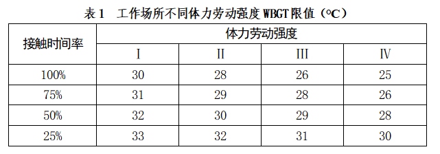 工作場所濕球黑球溫度(WBGT)指數職業(yè)接觸限值