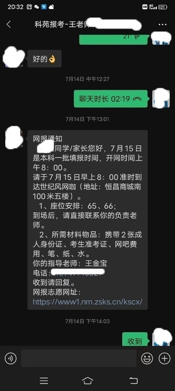 7月26日,呼和浩特市民樊女士致電本報新聞熱線反映:“我女兒小安今年高考成績?yōu)?15分,我們花4500元委托內(nèi)蒙古科苑信息科技有限公司(簡稱科苑報考)填報高考志愿,結(jié)果在提前批被黑龍江省某高校的日語專業(yè)錄取。等到本科一批報考時,機構(gòu)通知我們?nèi)ヌ顖笾驹福⒆影l(fā)現(xiàn)她已經(jīng)被本科提前批錄取到不想去的學(xué)校和不想讀的專業(yè),孩子現(xiàn)場崩潰大哭?!?/p>