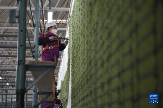 2月21日,在西寧市圣源地毯集團(tuán)有限公司生產(chǎn)車間,操作工在進(jìn)行藏毯加工。